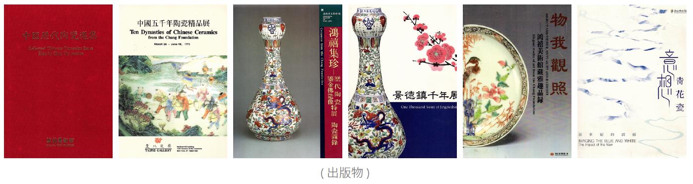 ▲展覽:1.「中國陶瓷五千年精品展」1992.10.15 - 1992.12.31 美國加州澄縣聖塔安市寶爾博物館、2.「中國陶瓷五千年精品展」1993.3.26-06.18 紐約中華新聞文化中心台北藝廊、3.「鴻禧集珍」1995.01.05 - 1996.06.13 高雄市立美術館、4.「景德鎮千年展」2006.10.21 - 2007 01.08 岐阜縣現代陶藝美術館、5.「景德鎮千年展」2007.01.20 - 2007 03.21 茨城縣陶藝美術館、6.「景德鎮千年展」2007.04.14 - 2007 06.17 山口縣立萩美術館、浦上紀念館、7.「景德鎮千年展」2007.07.31 - 2007.09.17 東京涉谷松濤美術館、8.「物我觀照」2008.12.01 - 2009.07.31 湖北省博物館、9.「新世紀的震撼」2015.11.19 - 2016.03.27 新北市鶯歌陶瓷博物館。