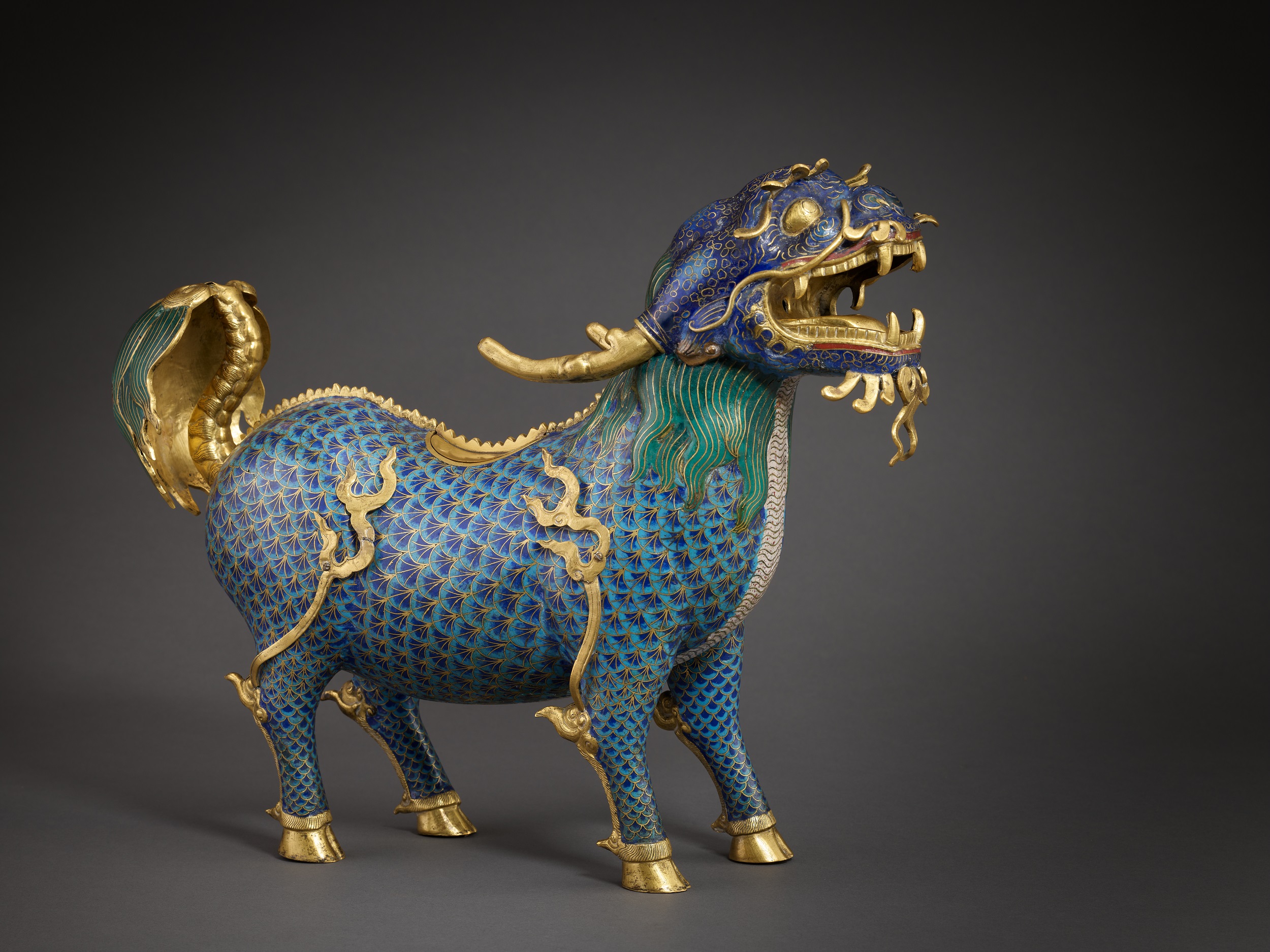 清乾隆 銅胎鎏金掐絲琺瑯麒麟香爐