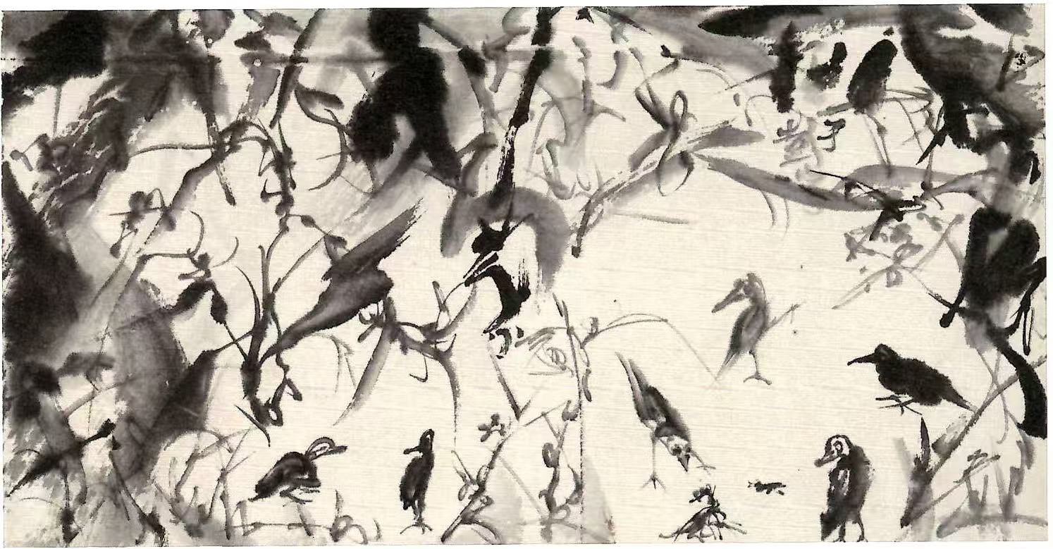本展亦呈現卜兹創作的多重面向。其中〈行走中的人〉、〈羅漢圖〉與〈暗薰雜花圖〉三件作品,以小字行草構成畫面佈白,書畫合一,展現他獨具的藝想世界。其夫人李麗芳曾言:「他是被書法耽誤的插畫家。」此語道出卜兹橫跨文字與圖像的創造力。