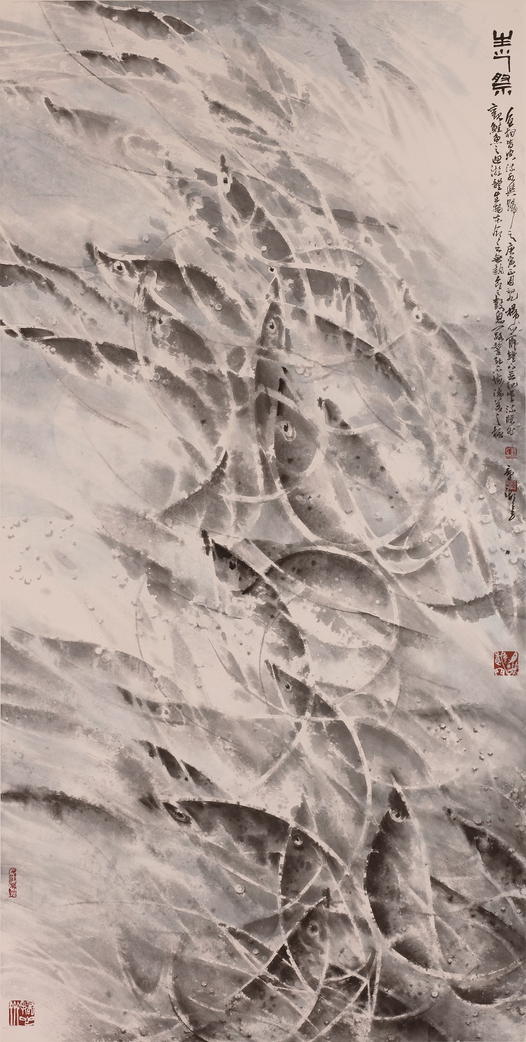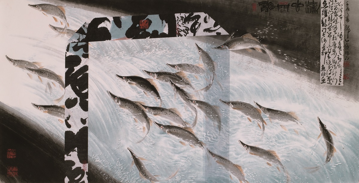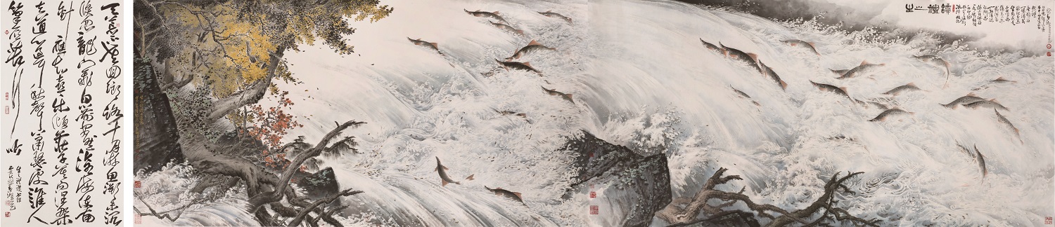 林章湖 魚躍龍門 2012 70x138cm 水墨設色 紙本 鏡框