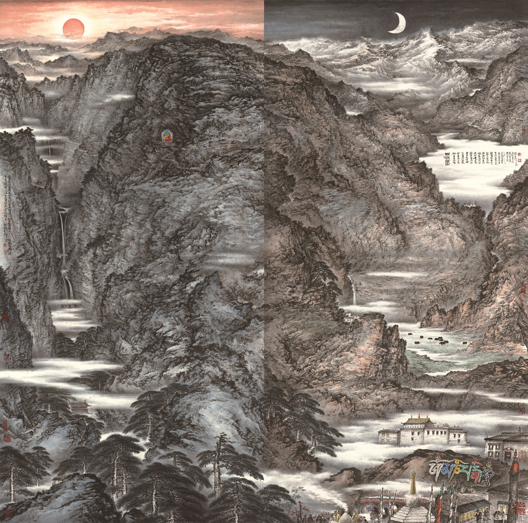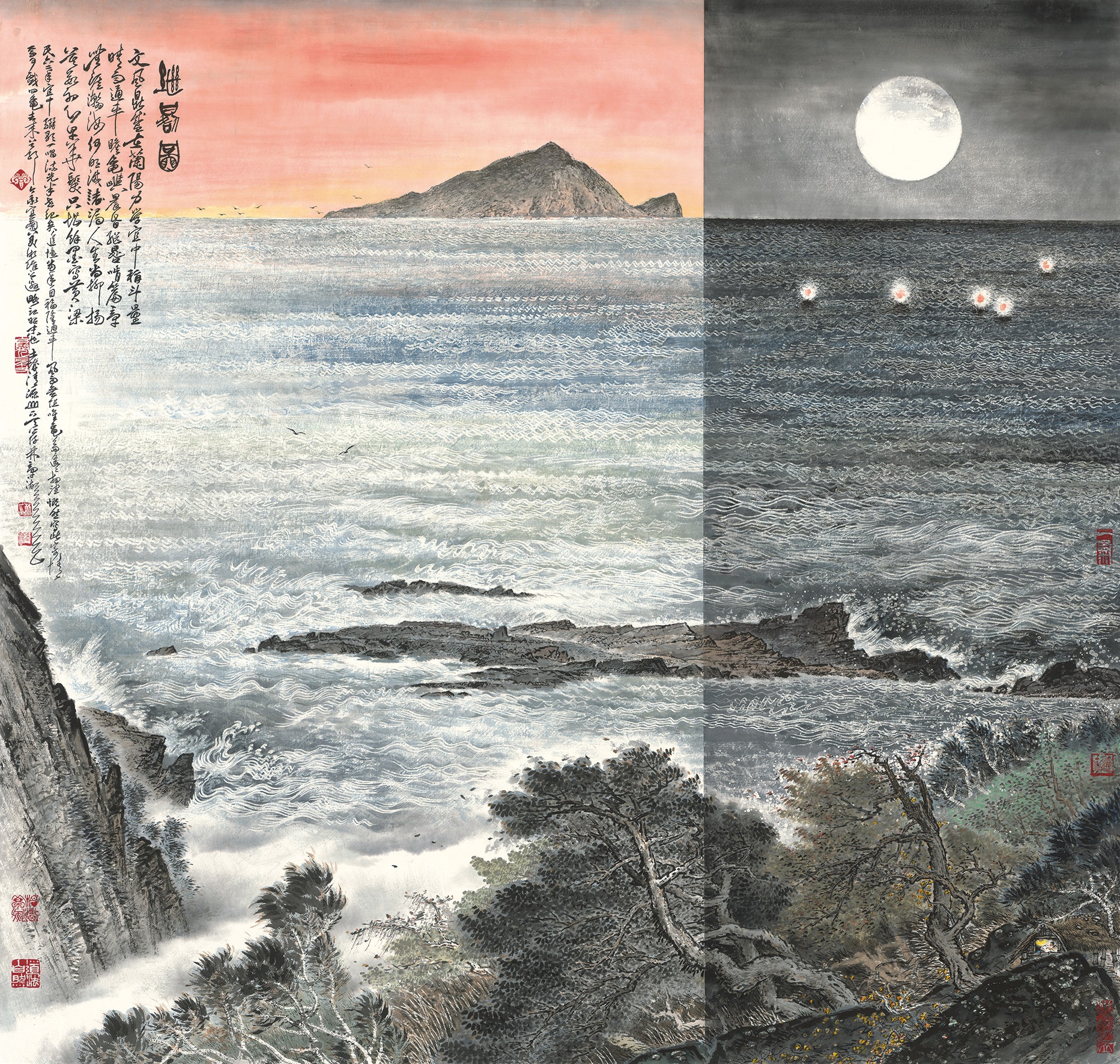 生之禮讚二連作 2018 121x553cm(含題詩) 水墨設色 紙本