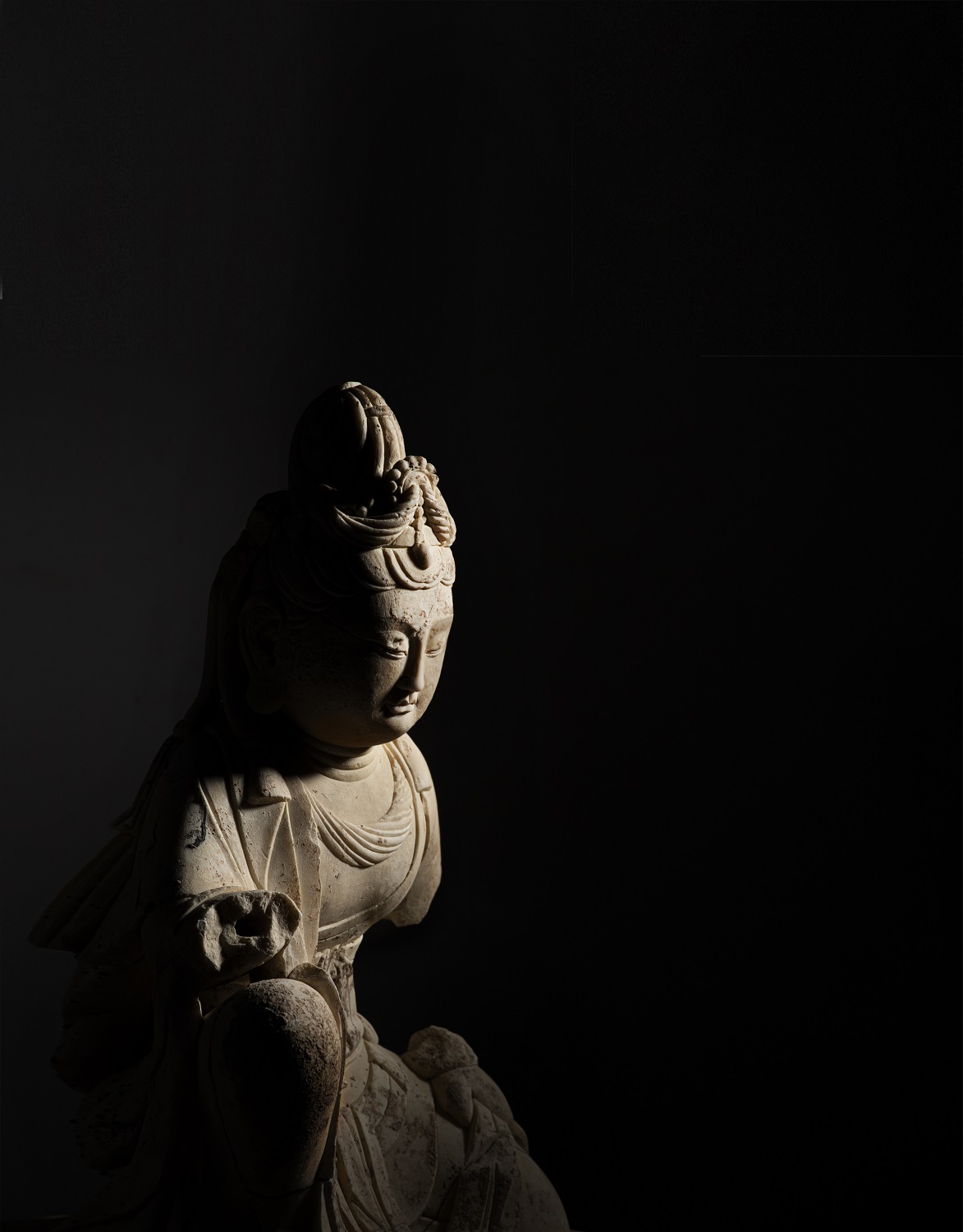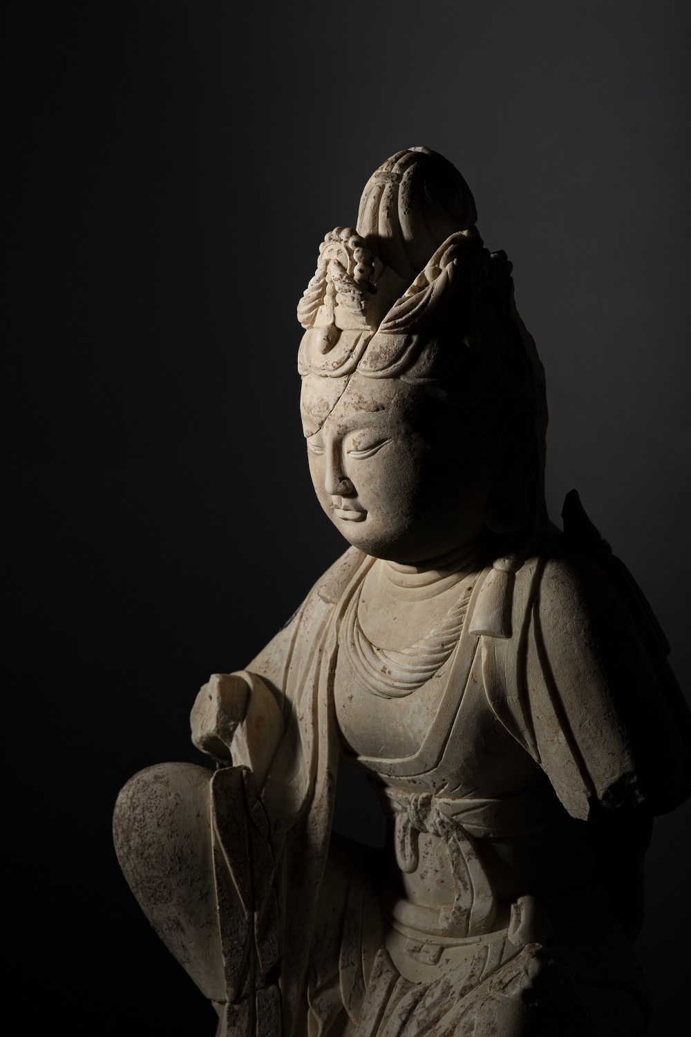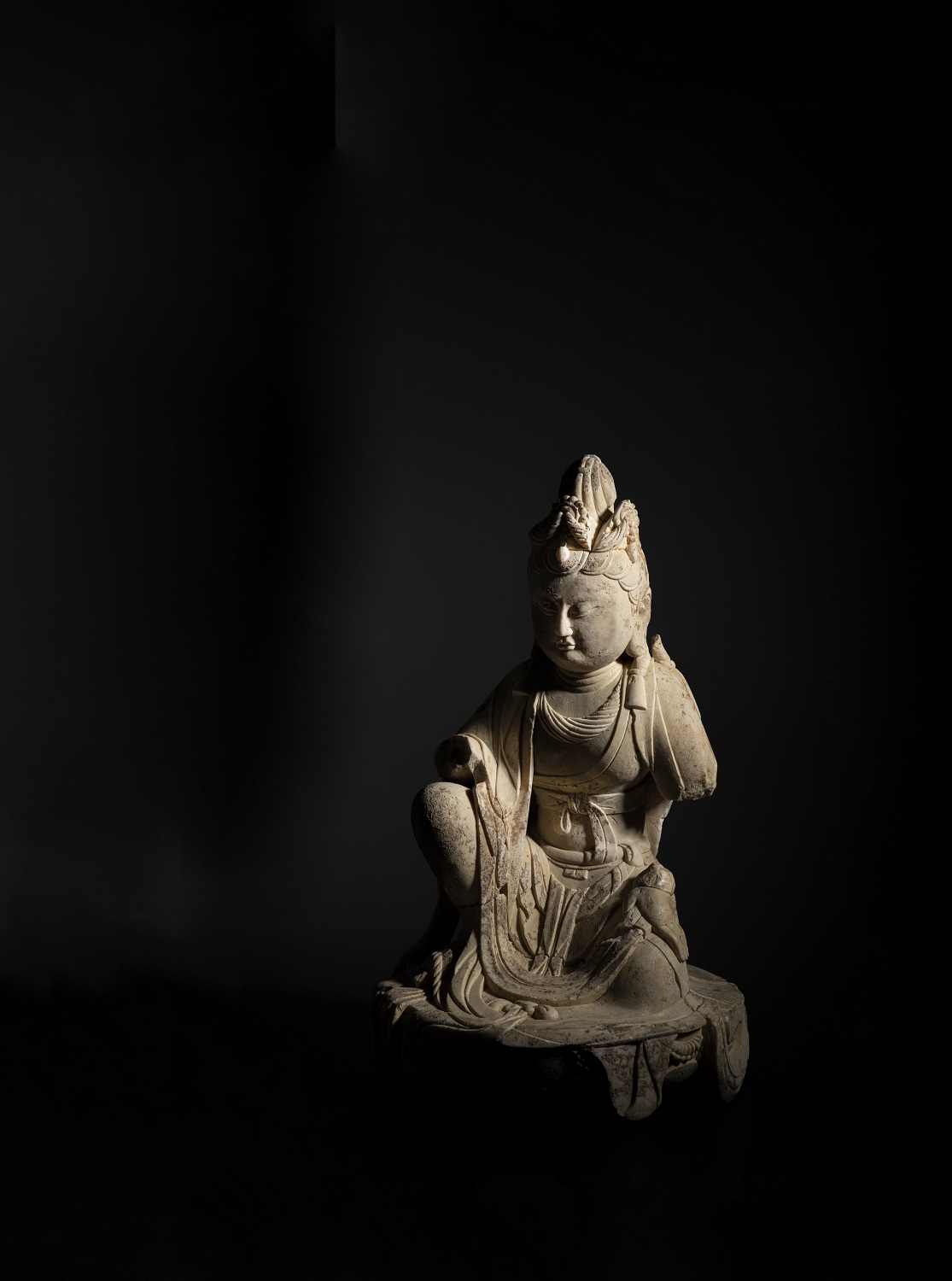 White Marble Offering Bodhisattva Seated Figure, Tang Dynasty
