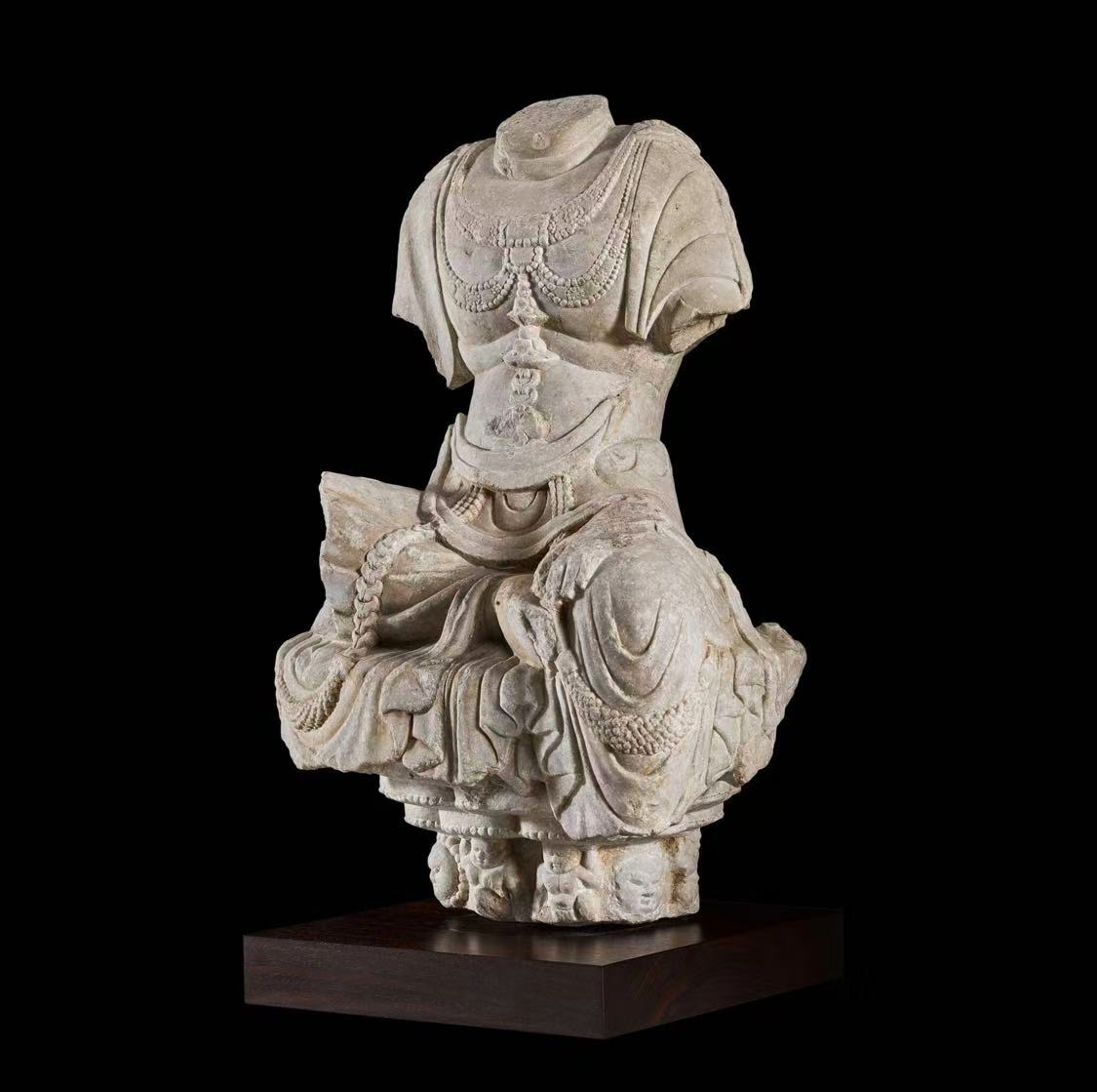 盛唐時期作為一個大帝國,對外來文化極具包容性,吸引了大量來自各地的藝術風格,促進了藝術的繁榮與創新。玄奘等高僧西行取經,直接將印度佛教藝術的風格帶回,對中國佛像的發展產生了直接影響。綜合來看,盛唐佛像雕刻的精美,是中國藝術在吸收外來養分的基礎上,結合自身深厚的文化底蘊和時代審美,所創造出的獨特藝術風格的體現。這也正是沐春堂拍品「盛唐維納斯」大理石菩薩像值得重視之處。