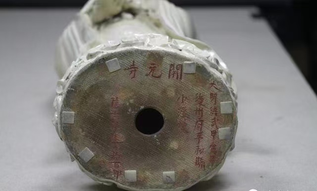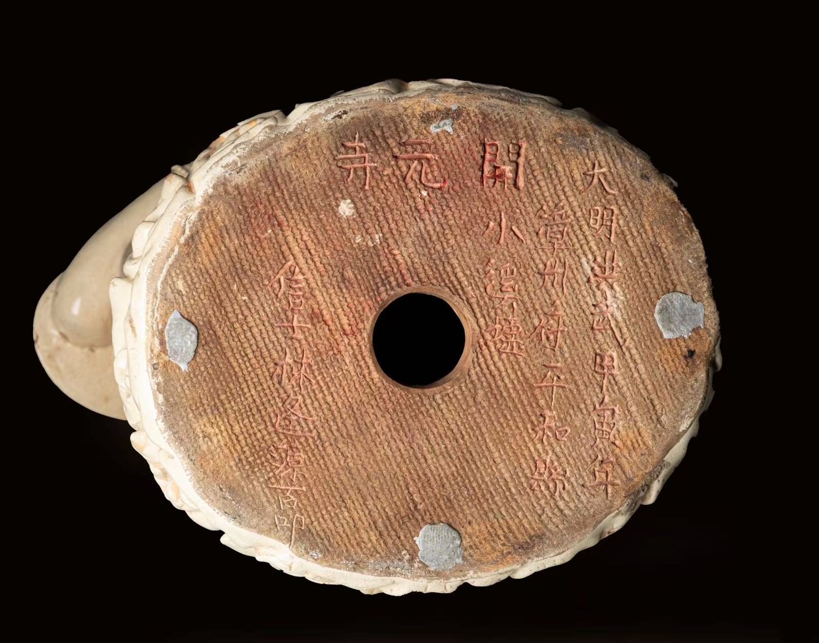 2019 年 10 月 香港蘇富比有一件拍品「大明萬曆乙卯年款 漳州窯米白釉觀音菩薩坐像」,底部刻文:開元寺。大明萬曆乙卯年,漳州府同安縣東門外東溪鄉。信士林石氏百叩。 此觀音像碩大莊嚴,且有銘文紀年,尤為出眾。