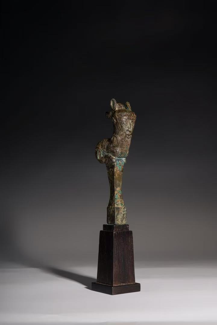 Bronze Human-Headed Ram, Warring States to Han Dynasty