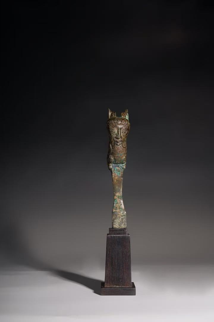即將在4/9號舉行的沐春堂四月拍賣會,拍品日趨多元,圖錄中Lot 3150戰國-漢 人面羊身銅件,是徵集自日本,該物件其實是古羅馬青銅鑰匙柄,至於是否透過絲路進到中國,然後在流至日本,目前缺乏可考的資料。但這是一件罕見的拍品。
