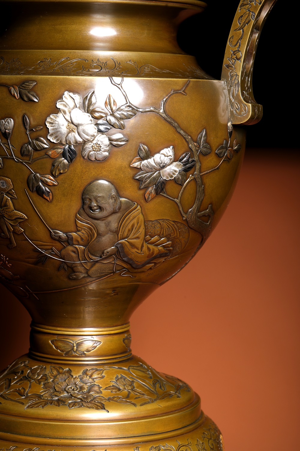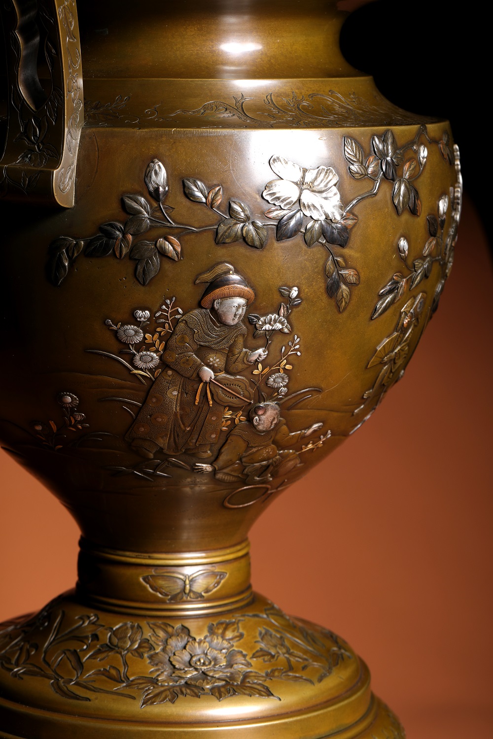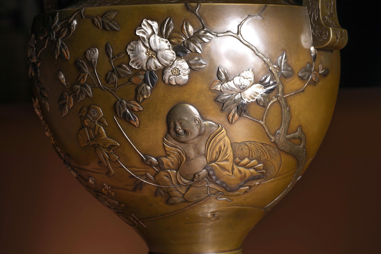 金、銀與赤銅(或四分一)之色澤交錯,在深沉銅地上形成層次分明而不流於浮華的視覺效果,呈現出一種近似繪畫的敘事性表面。