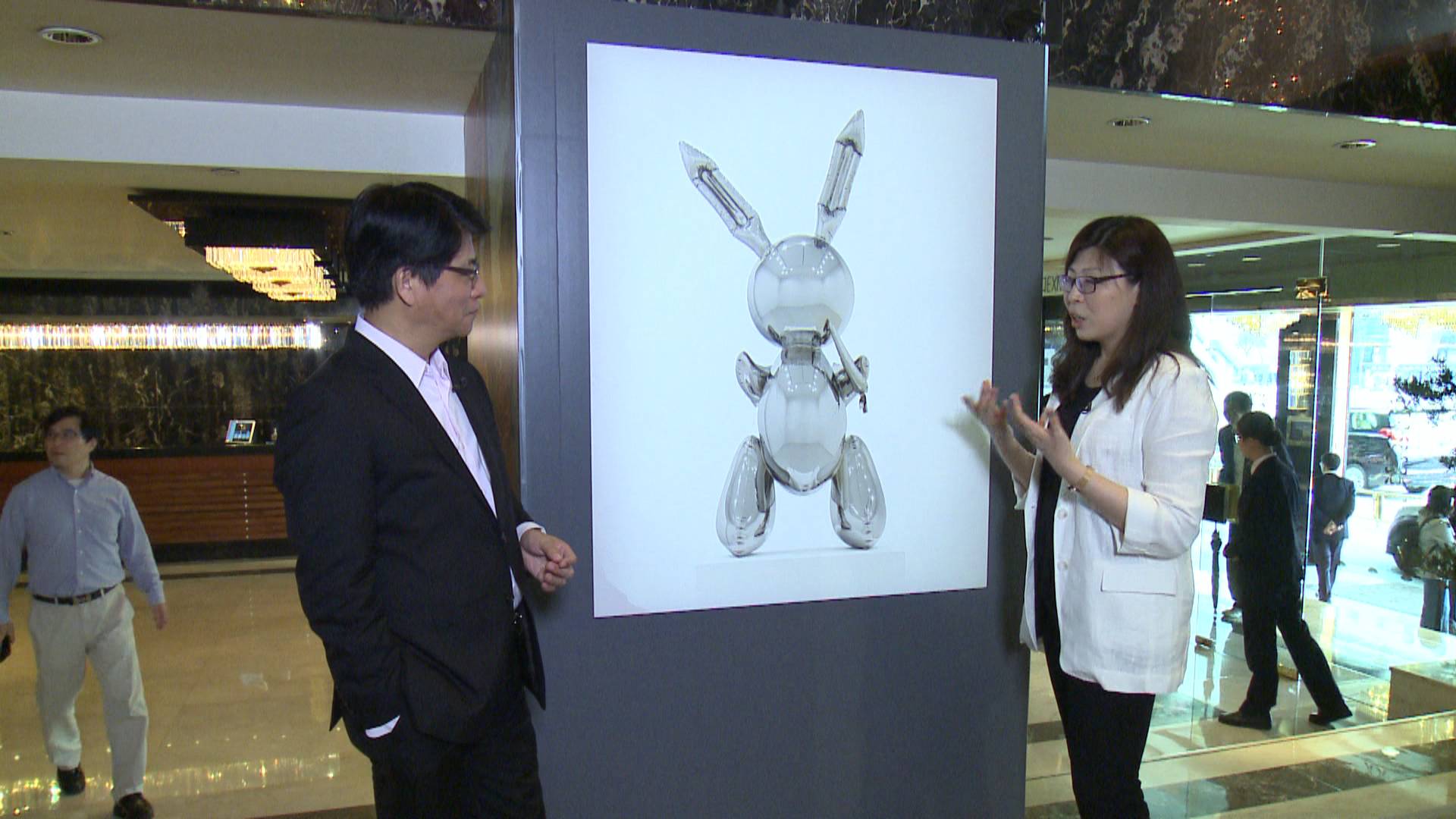紐約佳士得戰後與當代藝術夜拍中,買家花了十分四十秒激烈競標這一隻估價五千萬的美金的兔子.結果在現場的一位買家是最終贏家.這座不銹鋼雕塑高逾3呎,糅合極簡主義的光澤及卡通式的玩味.雕塑的外形簡潔而極具型格,沒有五官的兔子感覺神秘莫測,但其形態卻是輕浮而有趣.